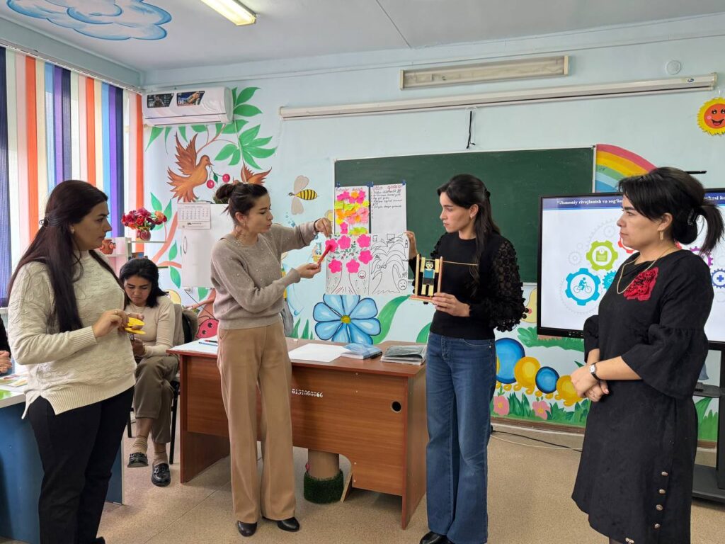 🖇 Treningda Maktabgacha va maktab ta’limi vazirining «Maktabgacha ta’lim tashkilotlarida malaka oshirishning «Metodik mahorat kuni» va «Metodik mahorat soati» tadbirlarini bosqichma-bosqich joriy etish to’g’risida» gi 362-sonli buyrug’i mazmun-mohiyati, pedagoglarni kasbiy rivojlantirishdagi ahamiyati borasida tushunchalar berildi. Shuningdek, «Metodik mahorat kuni» mavzulari doirasida namunaviy amaliy mashg’ulot o’tkazildi.